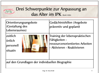 Wir müssen also unsere Haltung ändern, wenn wir betagte Menschen begleiten! Unsere beruflichen Möglichkeiten veranlassen uns zur Begleitung, Beratung und UNTERSTÜTZUNG DURCH ANGEFÜHRTE HILFEN. Meine Erfahrungen zum Thema Anpassungsstörungen und gezielte Hilfen dagegen kommen aus den frühen 90er Jahren in meiner Tätigkeit als Stationsleitung in St. Veit. So wurden die Anpassungshilfen Grundlage für das Integrative Pflegekonzept und diese sind vielseitig praktisch erprobt!