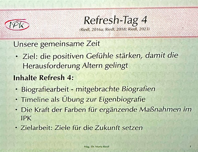 Seit 2012 finden regelmäßige Schulungen zum IPK für die Mitarbeiter des Seniorenheimes statt. Also 13 Jahre Lernen, Auffrischen, Umsetzen, Zuhören und Spaß haben.